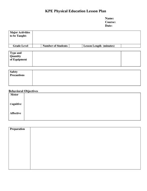 Free Printable Lesson Plan Template Blank Of Blank Pe Lesson Plan